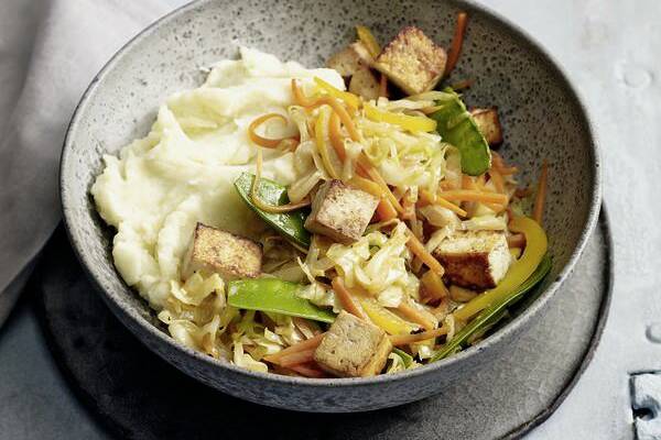 Spitzkohlpfanne Mit Tofu Und Kartoffel Kokos Puree Rezept Kuchengotter